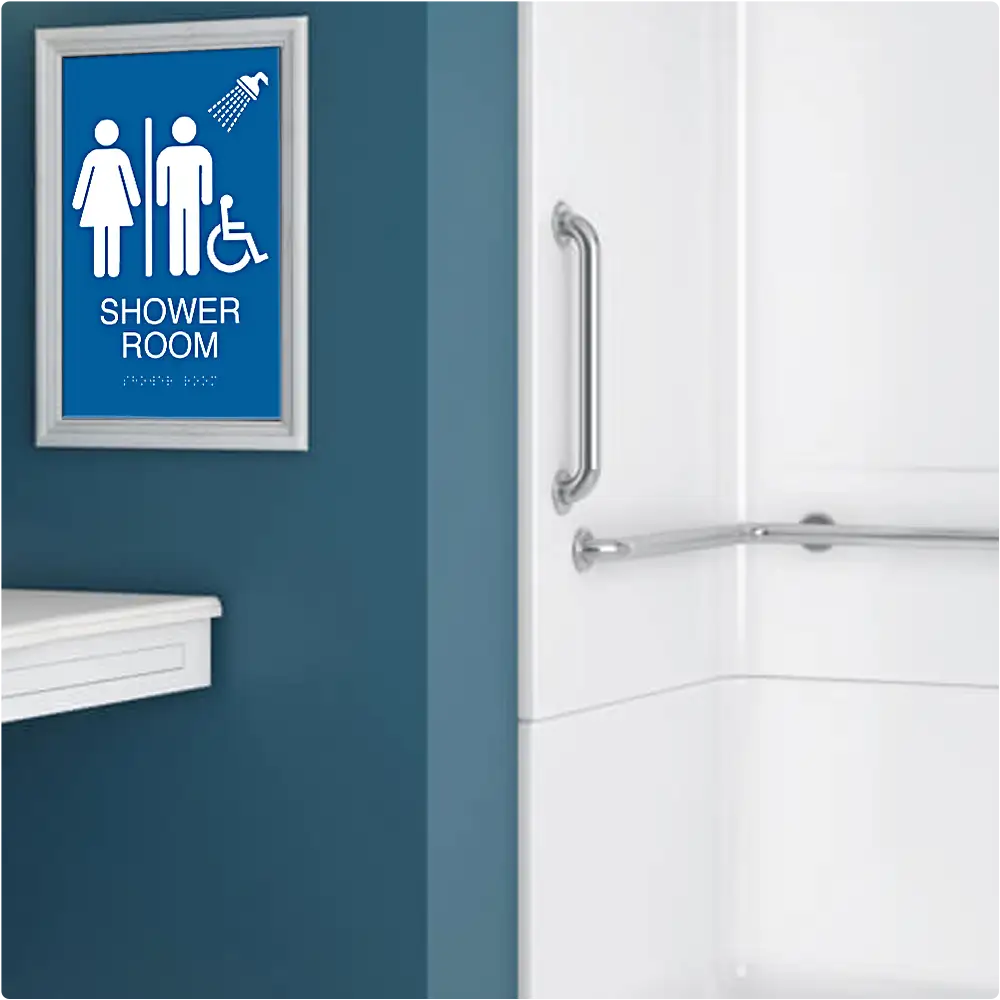 That’s why our ADA compliant Shower Room signs are crafted with precision, using raised tactile lettering, braille, and high contrast visuals to ensure full accessibility for individuals with visual impairments. Designed to meet all federal ADA standards, these signs not only help people find the space with ease but also reinforce your facility’s commitment to inclusion and safety.